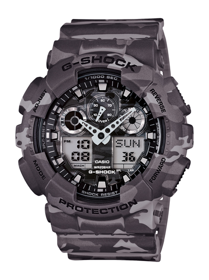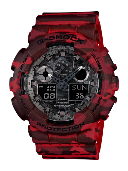 上段左から、GA-100CM-4AJF、GA-100CM-5AJF。下段、GA-100CM-8AJF。すべて¥19,980