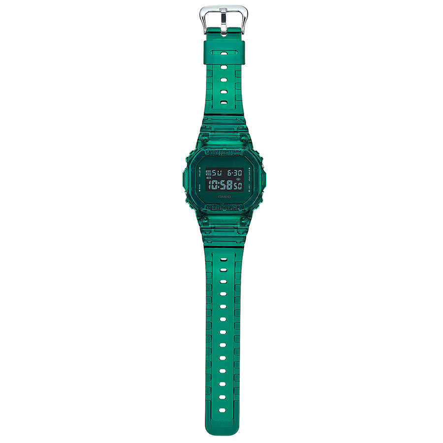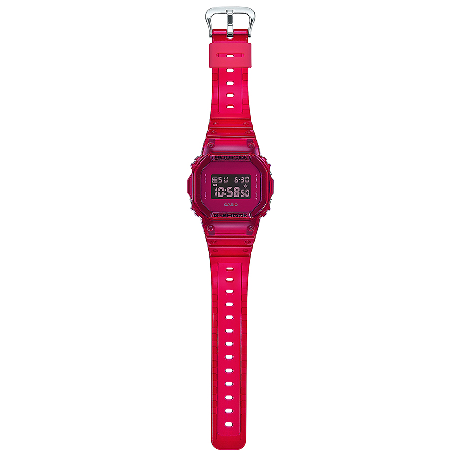 スクエアフェイスのGW-5600をベースに、ケースやバンドにスケルトン素材を使用した新シリーズ。