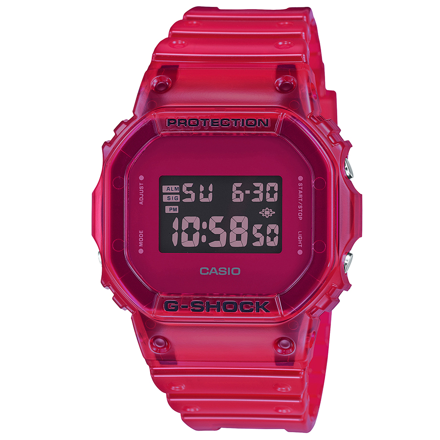 G-SHOCKの元祖、GW-5600にブルー、グリーン、レッドのカラースケルトンを採用。すべて¥13,200