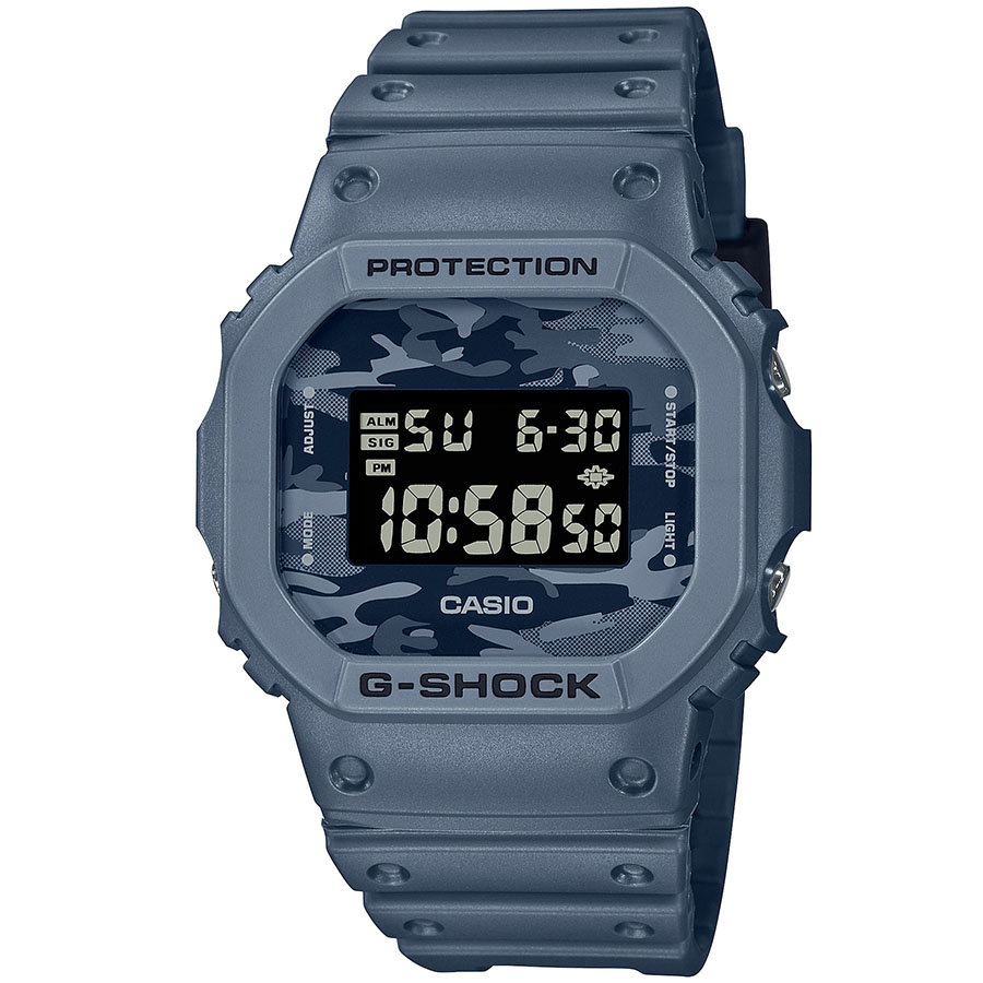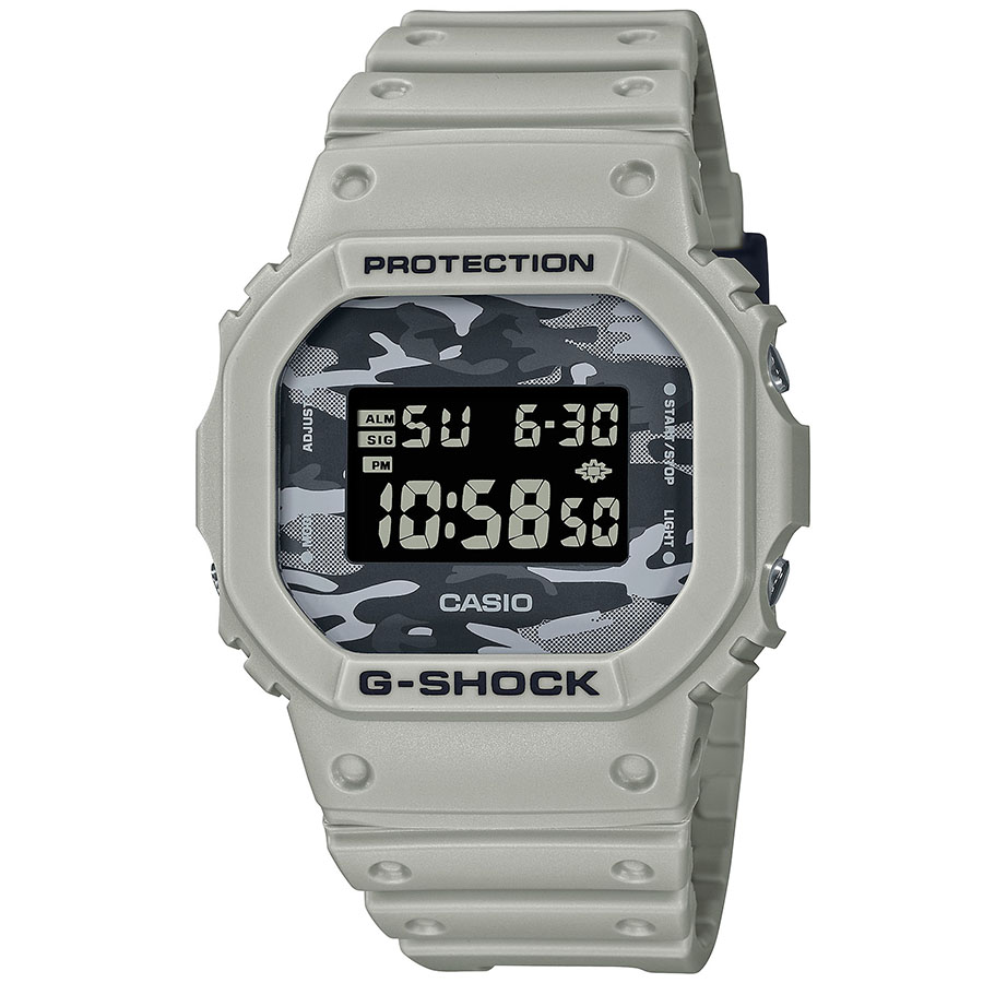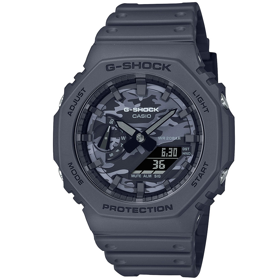 定番スクエアケースのDW-5600と薄型八角形のGA-2100の文字盤にカモ柄を採用。