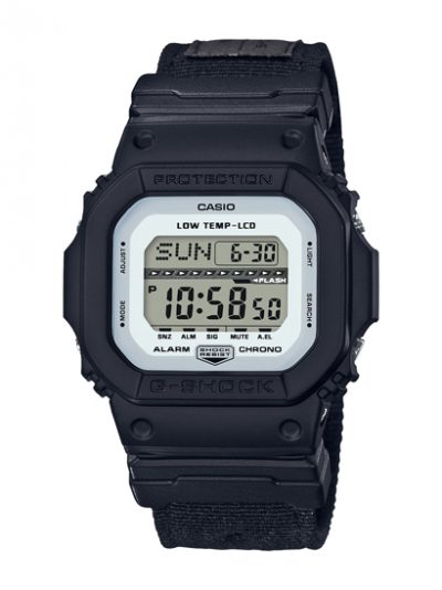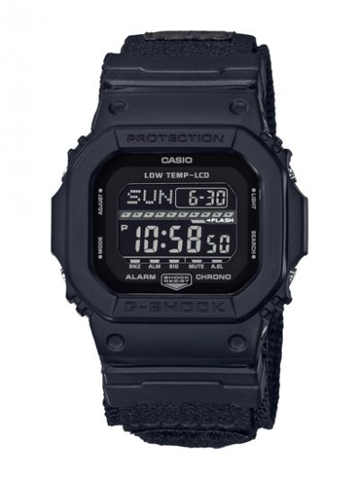 ケースからバンド、文字盤にいたるまでブラックで統一したGLS-5600WCL-1JF。¥15,660