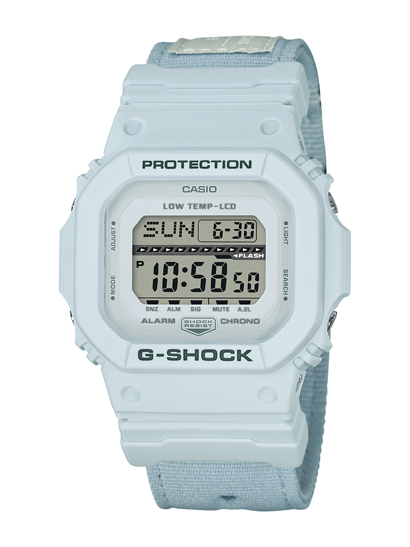 文字盤にホワイトを採用することで視認性を高めたGLS-5600CL-1JF。¥ 15,120