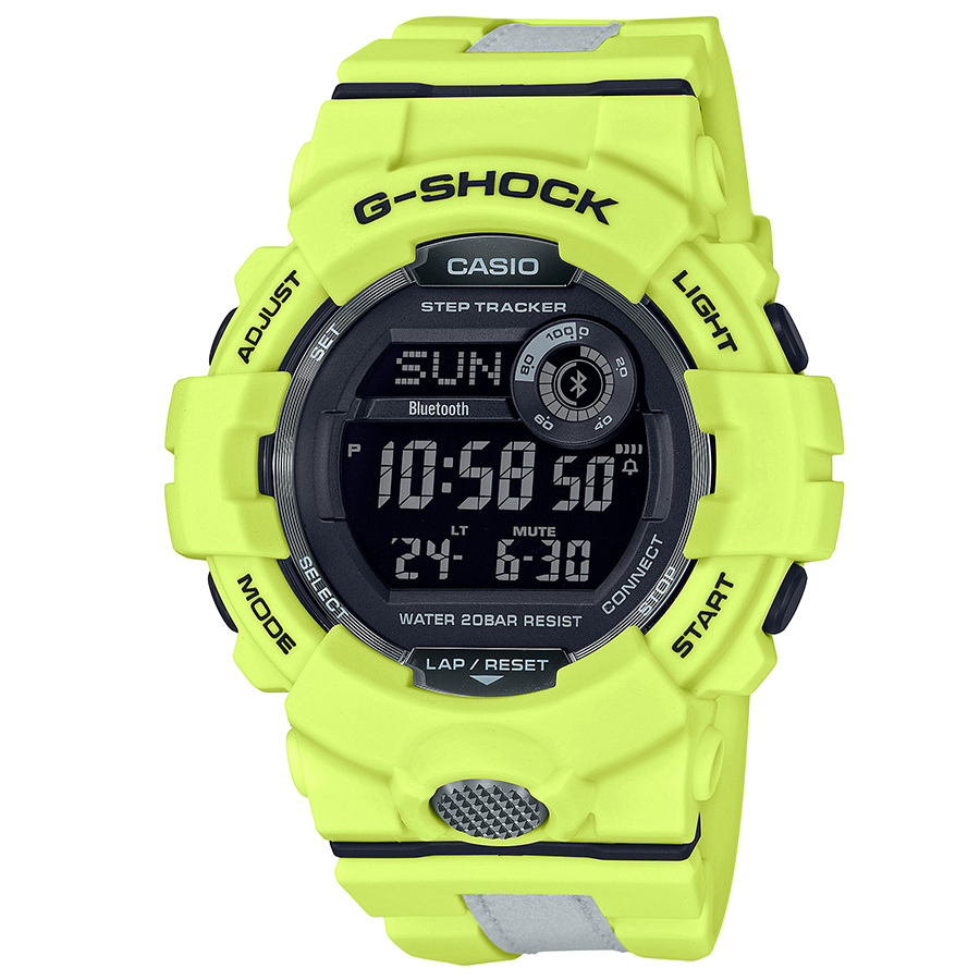 こちらもBluetooth対応のデジタルウォッチ。高輝度なLEDライトが夜間でも明るく表示。GBD-800LU-1JF ¥15,950