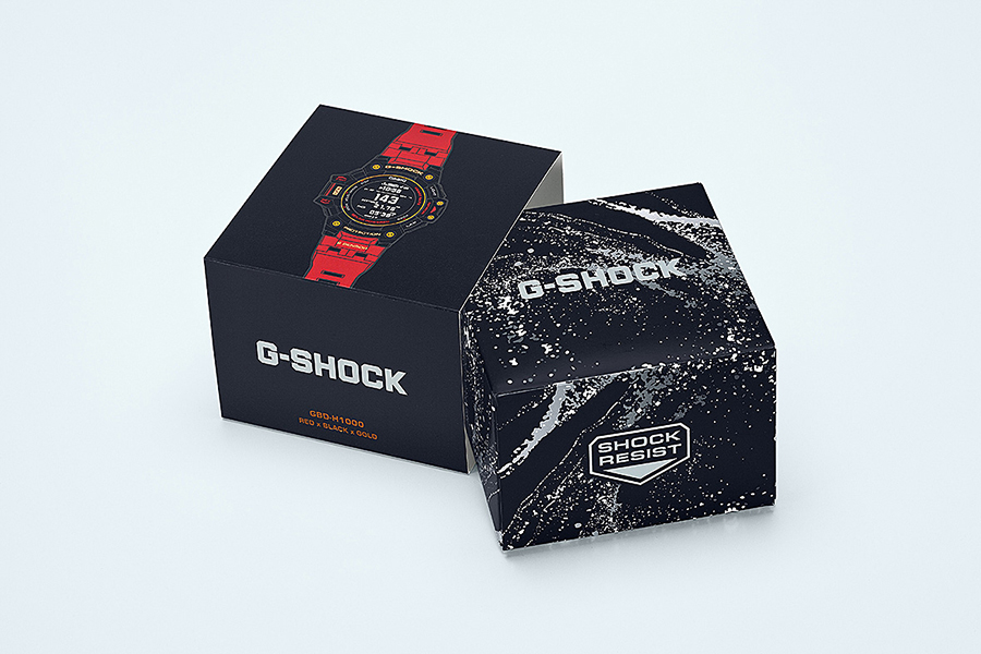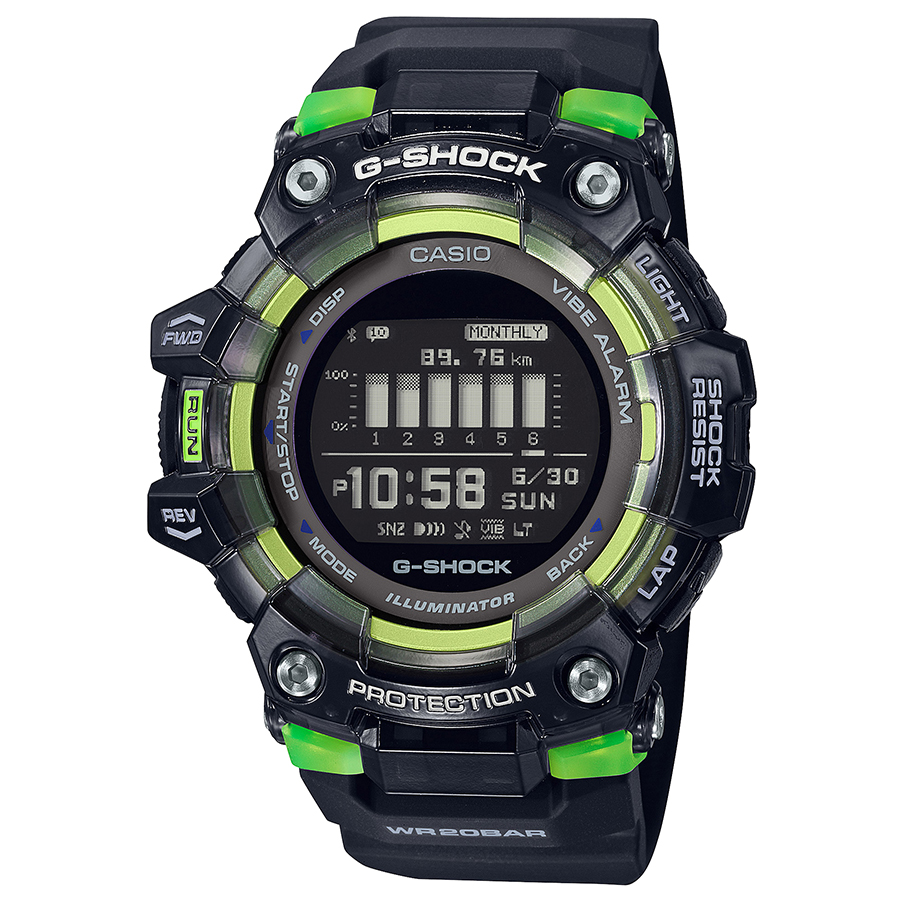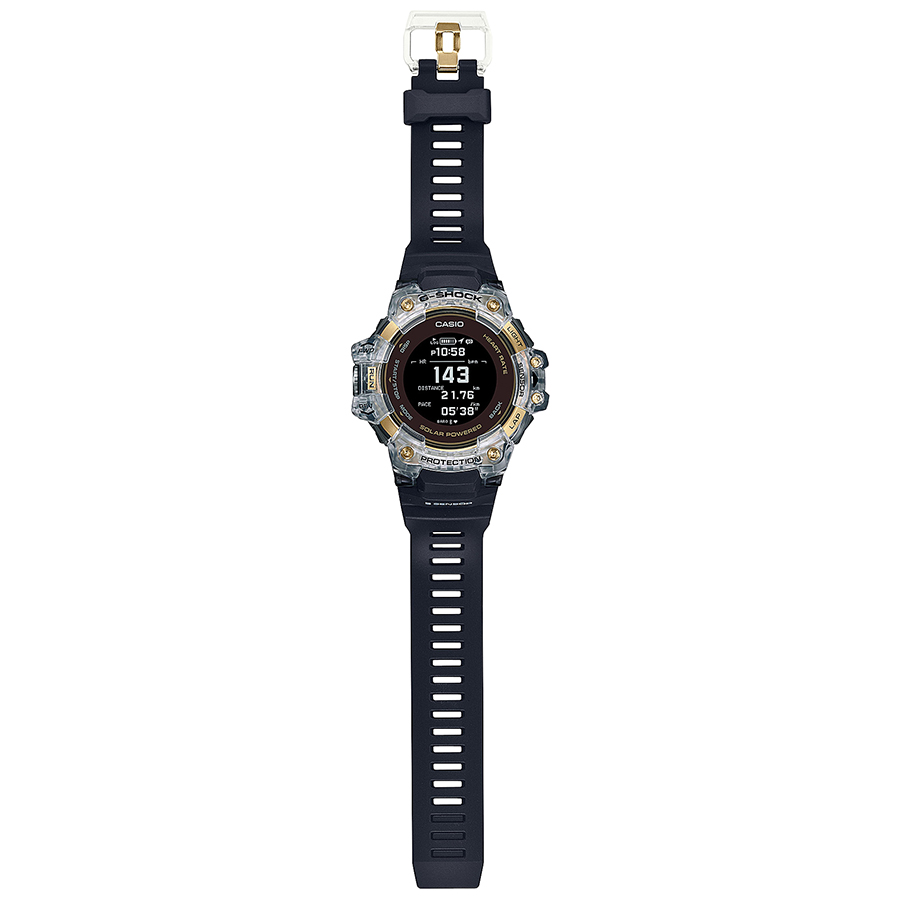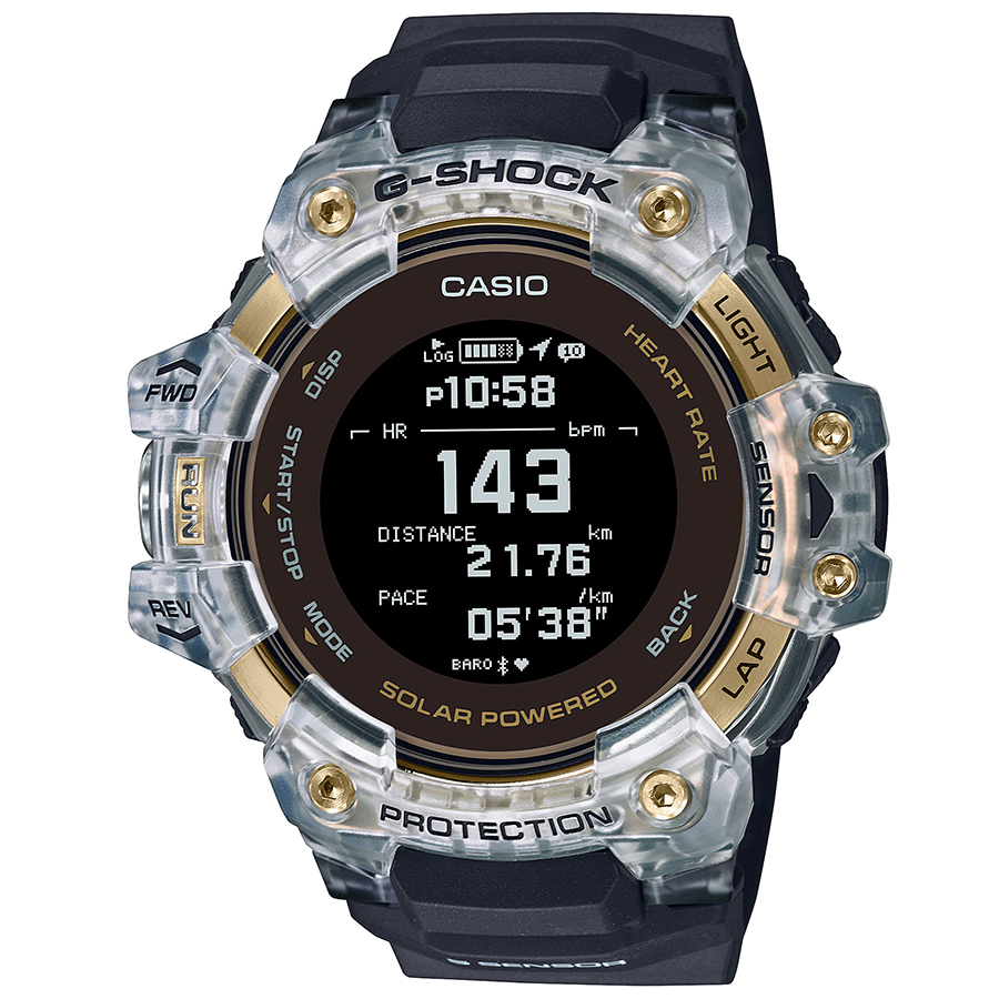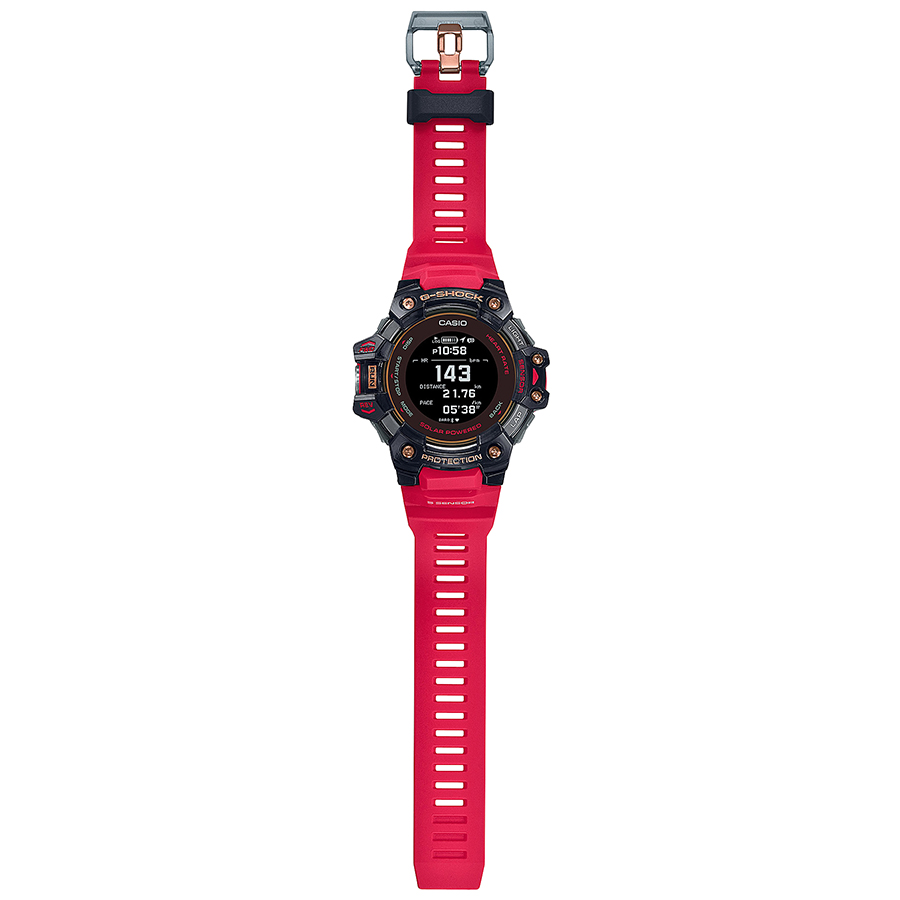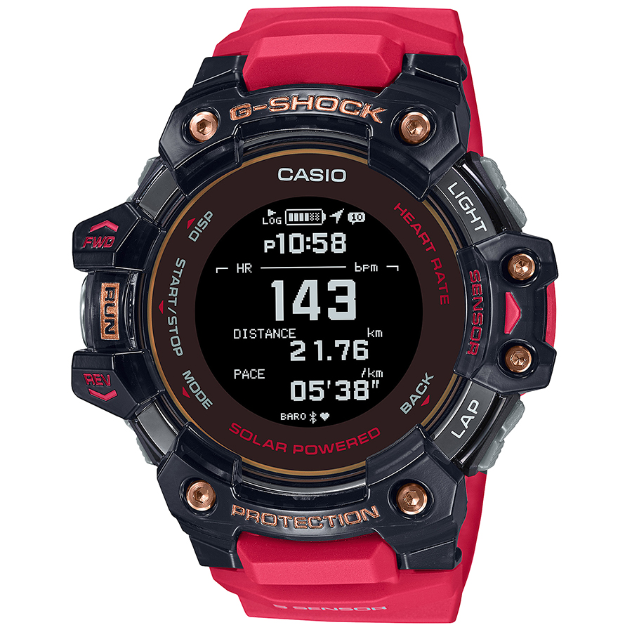 心拍計やGPSを搭載したGBD-H1000に、ブランドカラーのブラックとレッドをベースにスケルトン樹脂をプラス。
