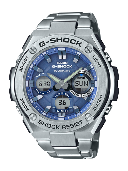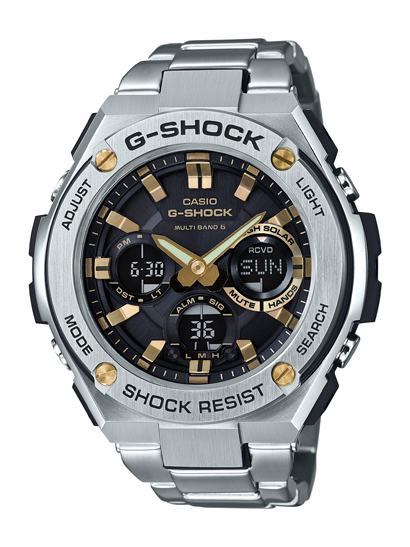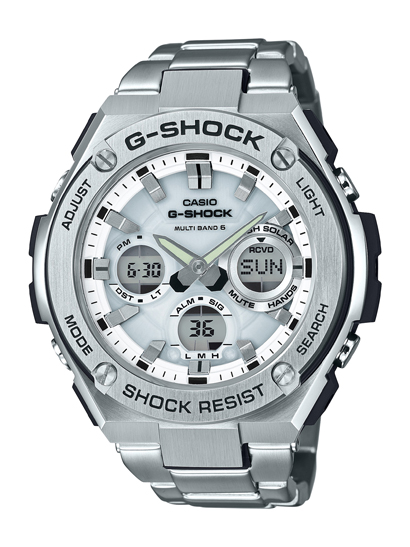 レイヤーガード構造により優れた耐衝撃性を実現。タフソーラーや針退避機能など優れた機能性が魅力のG-STEEL。GST-W110D-1A9JF、GST-W110D-2AJF ともに¥48,600