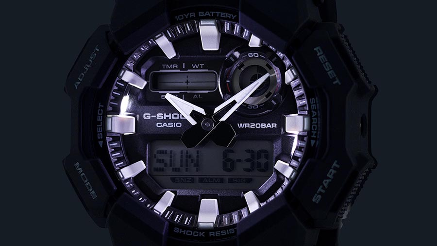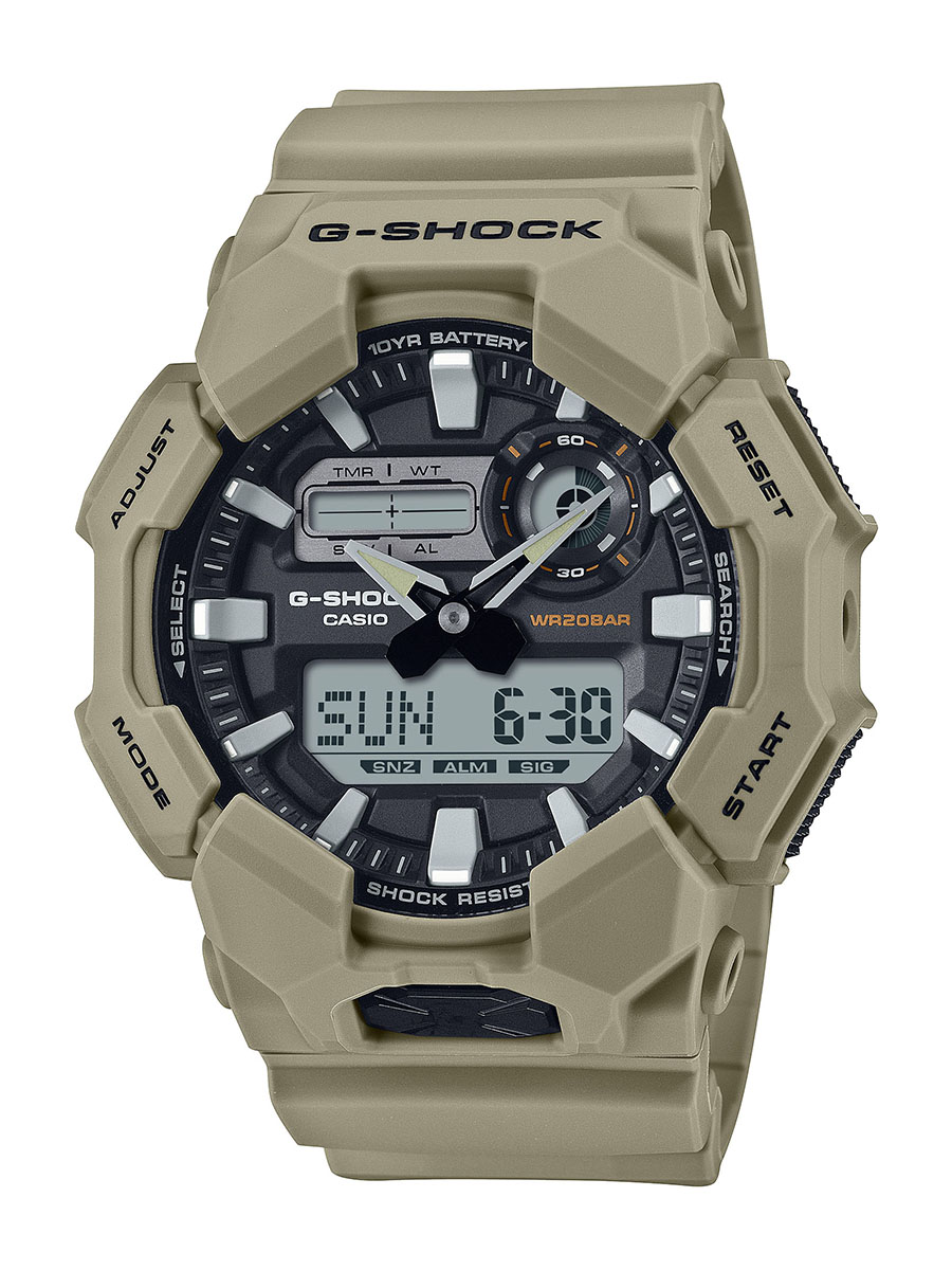 ワイドフェイスとビッグケースが特徴的なGD-010とデジタルアナログコンビモデルのGA-010の2型がラインナップ。