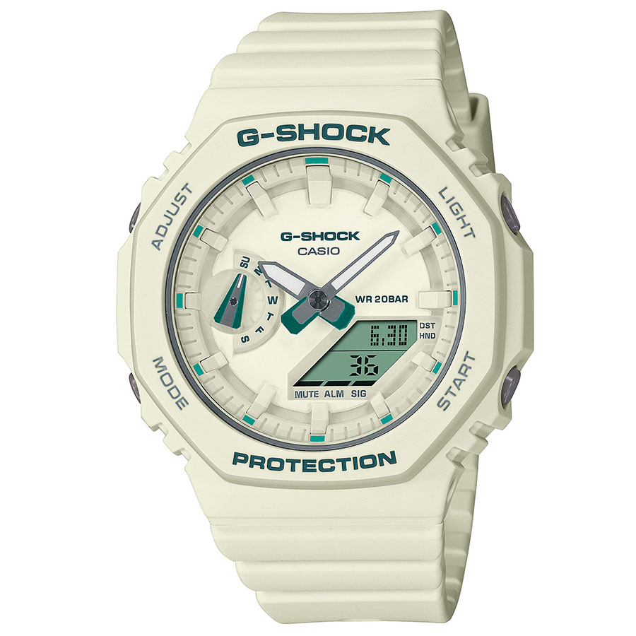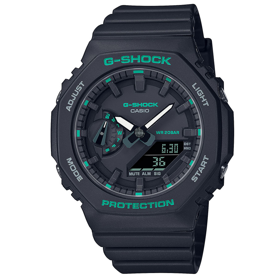 G-SHOCKロゴやインデックス、液晶などにトレンドのグリーンを採用。