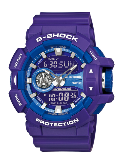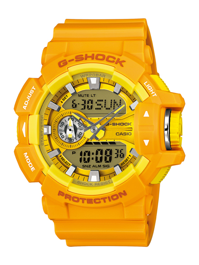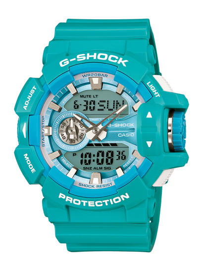 上段左から、GA-400A-2AJF、GA-400A-6AJF。下段、GA-400A-9AJF。各色すべて¥18,360