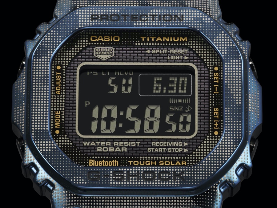 ケースやベゼルなどすべてにチタン素材を採用し、ブルーIPとレーザー彫刻を用いることで独特のブルーカモフラージュ柄を表現。