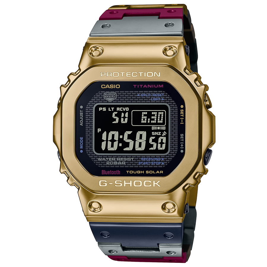 自動時刻修正やワールドタイムなどの設定を簡単に行うことができるスマートフォンリンク機能に加え、タフソーラーやマルチバンド6、高輝度フルオートLEDなど機能面も充実。GMW-B5000TR-9JR ¥192,500