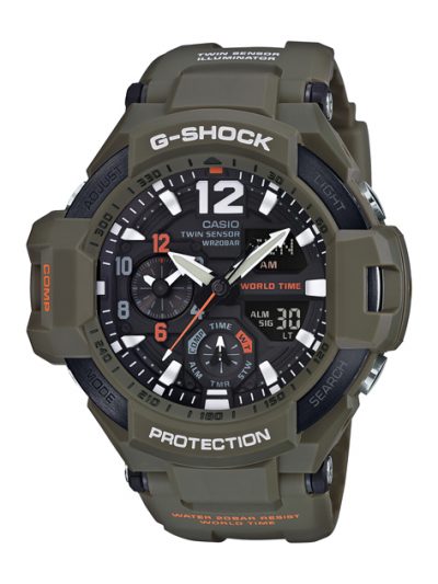 フライトジャケットをテーマに、カーキ&オレンジの組み合わせが存在感を主張するGravity Masterの新作がG-SHOCKから登場。