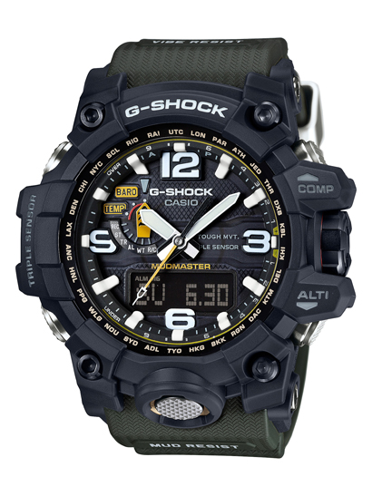 耐振動構造や新しい防塵・防泥構造であるマッドレジスト構造に方位・気圧・温度計測機能を搭載したMADMASTER。上段左から、 GWG-1000-1A3JF、 GWG-1000-1A9JF、 GWG-1000-1AJF。各色ともに¥86,400