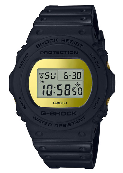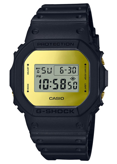 DW-5600、DW-5700をベースに、文字盤をゴールドとシルバーで仕上げたゴージャスな逸品。