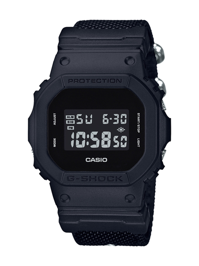 スリムかつスクエアなシルエットの定番モデル、DW-5600BBN-1JF ¥12,960