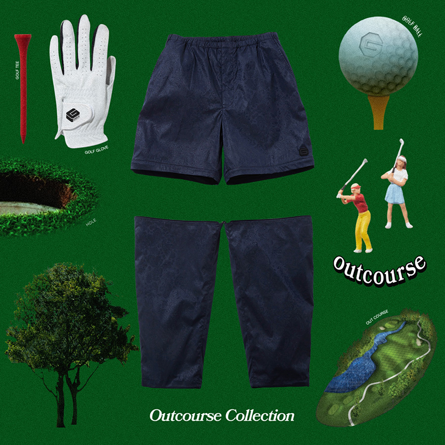 今回はゴルフウェアをテーマにしつつもOUTCOURSE=コース外(日常)での着用を想定したデザインを採用。