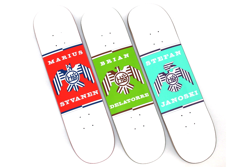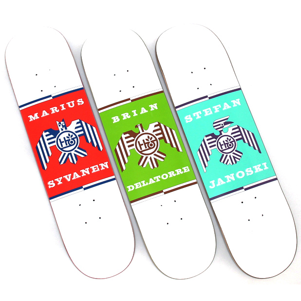 写真左から、Raptor Terratoneシリーズのマリウス・シヴァネン(8×31.625)、ブライアン・デラトーレ(8.125×31.625)、ステファン・ジャノスキ(8.25×31.75)。すべて¥11,880