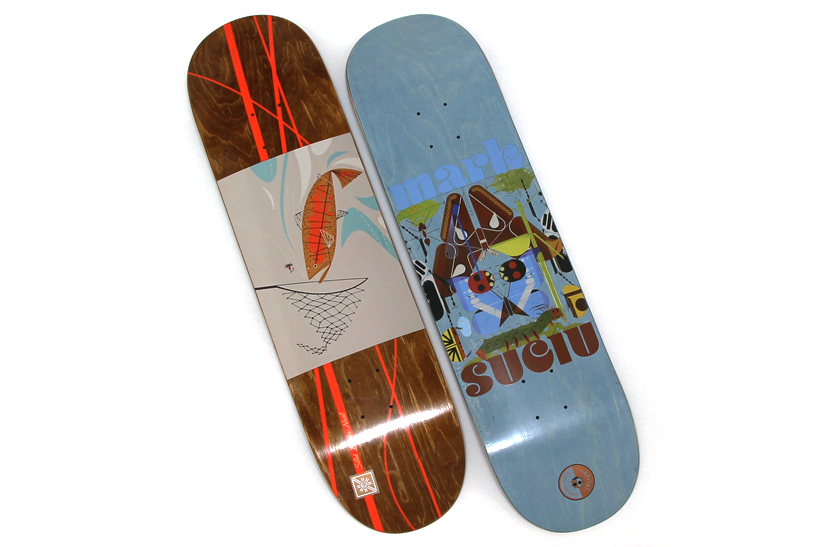 写真左から、Paper Skatersシリーズのブライアン・デラトーレ(8.125×31.5)、ボビー・デカイザー(8.25×31.75)。ともに¥11,880