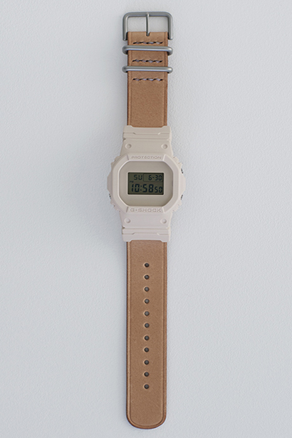 ピット鞣しのカウレザーをバンドに使用したDW-5600HS-4JF。交換用のウレタン製バンドも付属。¥28,080