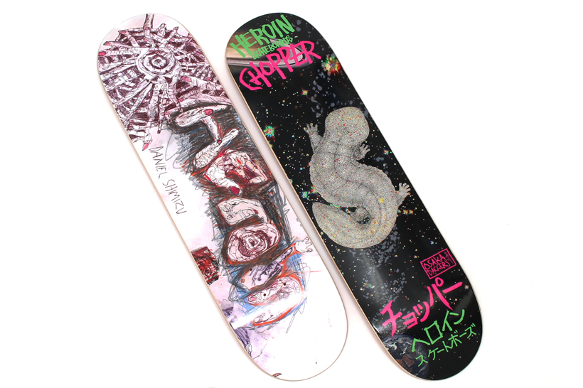 写真左から、ダニエル・シミズ Enemy(8.25×31.9)、チョッパー Space Salamander(8×31.75)。ともに¥11,880