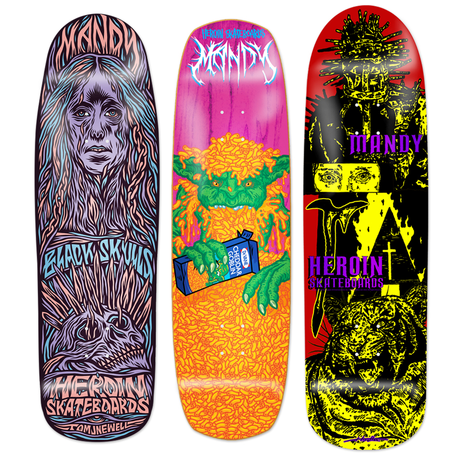Mandyシリーズ。写真左から、Tom Newell(9.25インチ)、Bratrud(8.9インチ)、Hirotton(9.4インチ)。すべて¥14,300