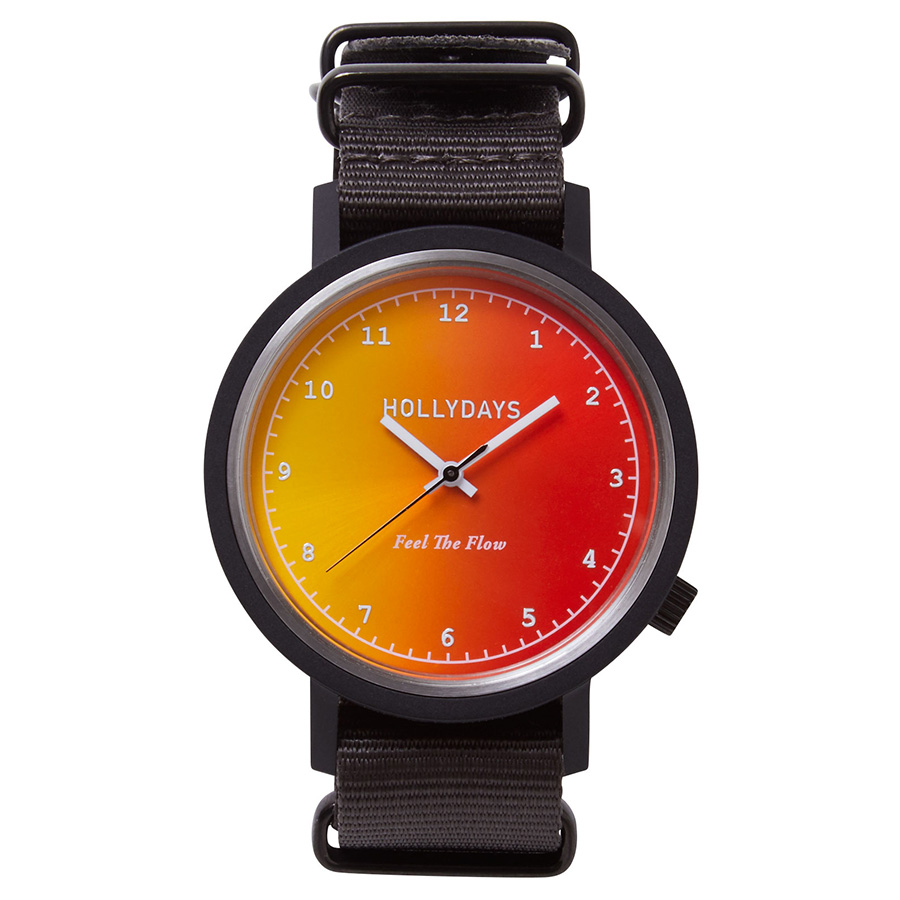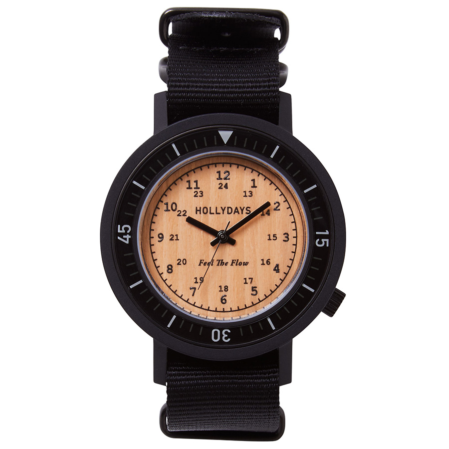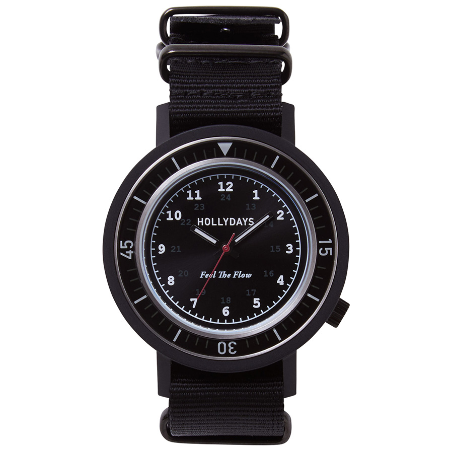 ダイバーズウォッチをモチーフにしたベゼルが特徴的。ブランドのスローガンであるFeel The Flowのメッセージが文字盤にプリント。THE ROLLINS ¥27,000