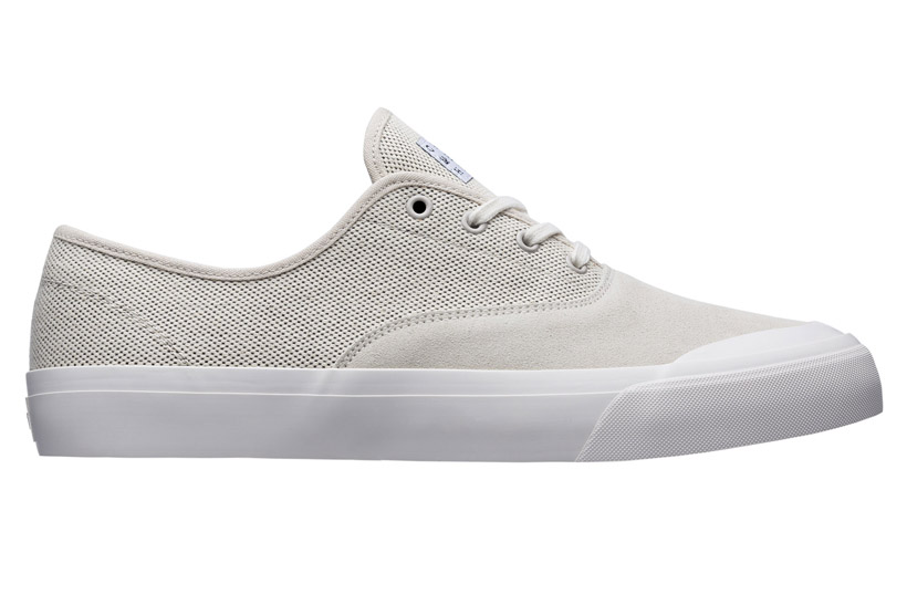 アッパーにメッシュを採用し通気性に優れたシューズ。デッキテープで摩耗するトゥ周りにスエードを用いることでスケートにも対応。CROMER Cream/Black ¥12,960