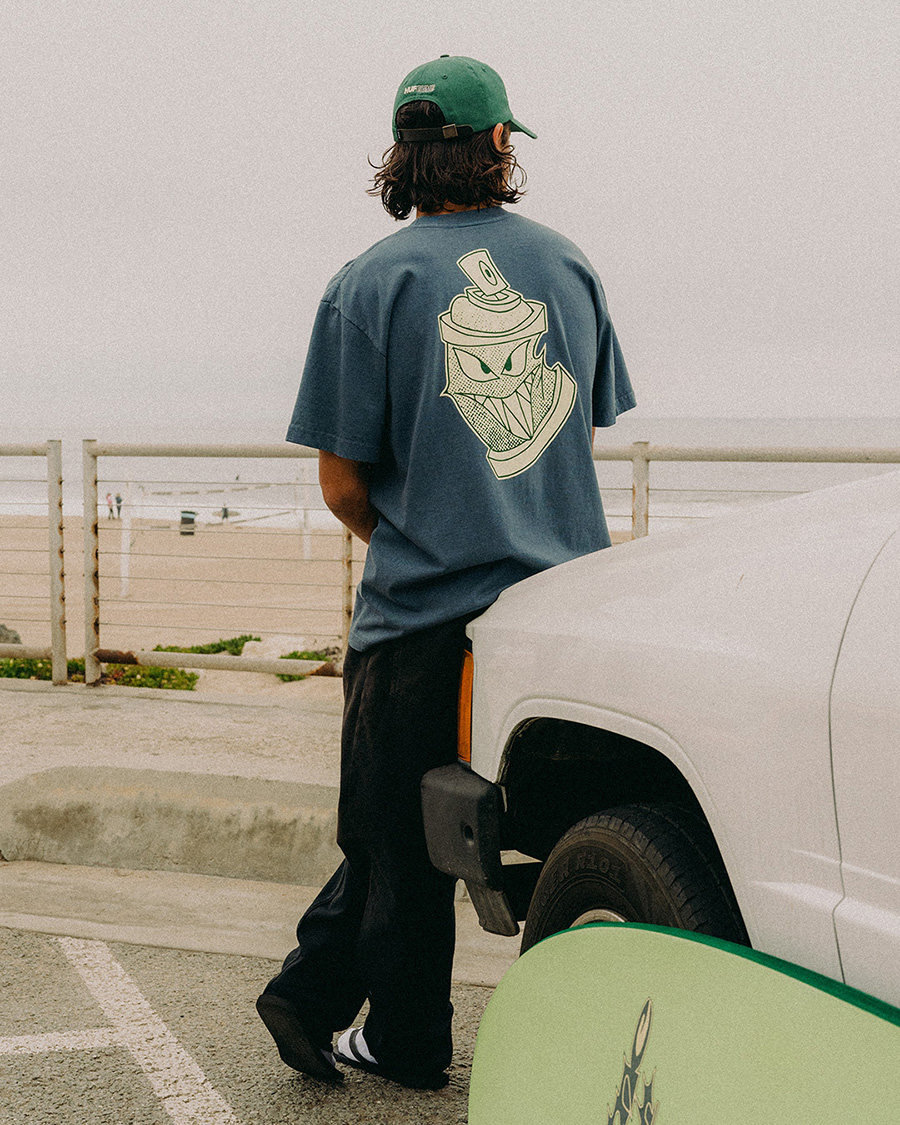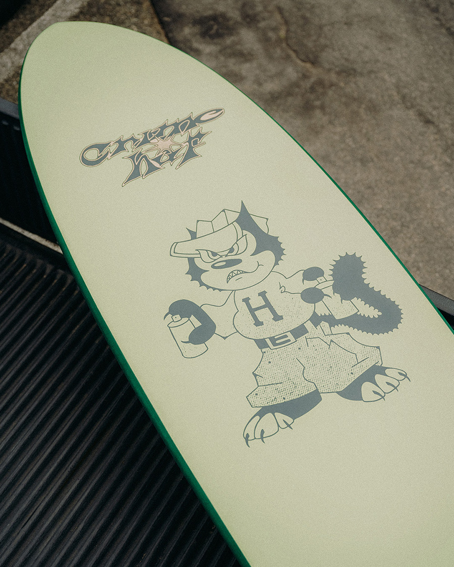 '90年代のスケートとストリートカルチャーを感じさせるグラフィックが施されたサーフボードとTee、Capが登場。