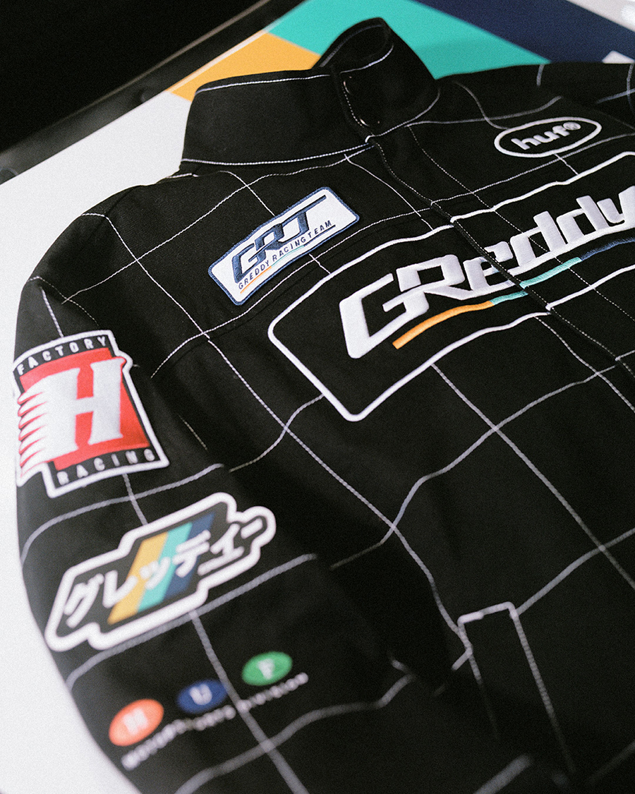 レースの美学とGReddyのアーカイブ&レガシーからインスパイアされたカスタムアートをアイテムに採用。