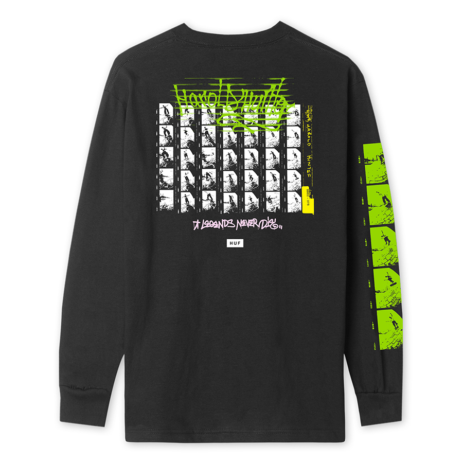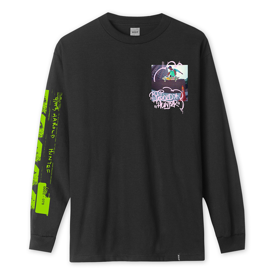 生前のハロルドの写真を用いたラインナップはTeeやHoodieなど計4アイテム。利益の一部はHHFに寄付されます。