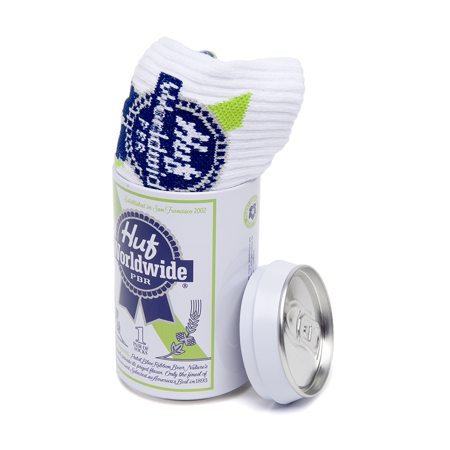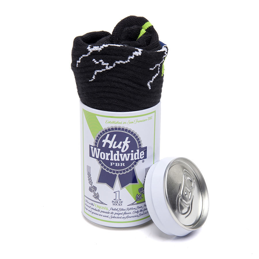 ビール缶パッケージに入ったソックスなどなど、遊び心に溢れたアイテムの数々はHUFの旗艦店や公式オンラインストアにて。