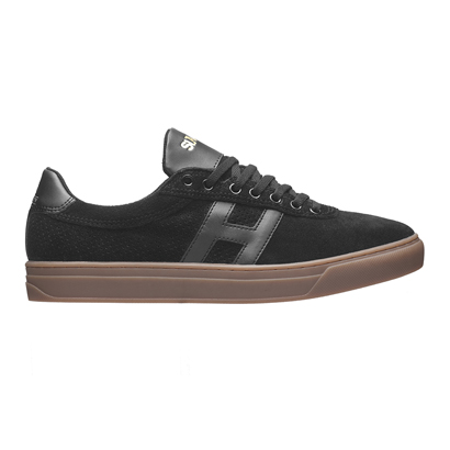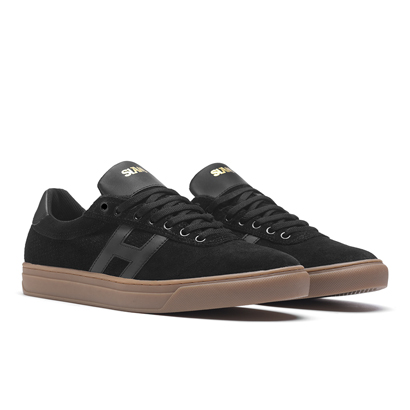 スッキリしたシルエットのサイドにパンチングレザーを採用。タン部分には両ブランドのロゴがゴールドでプリント。HUF × SLAM CITY SKATES SOTO ¥14,580