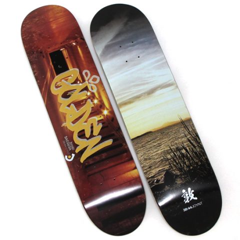写真左から、Hideaki Hayashi(7.625×31.1 / 7.875×31.5 / 7.375×29.4(Kids))、Tatsuma Tamano(7.625×31.1 / 8×31.6 / 7.375×29.4(Kids))。ともに¥8,640 Kidsサイズは¥7,560