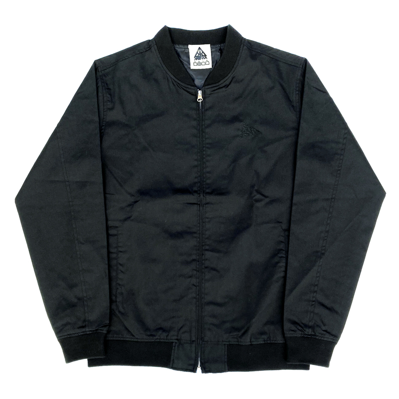 高澤祐介シグネチャーデッキのデザインをバックに配したナイロンジャケット。Chalcanthite Stadium Jacket ¥10,780
