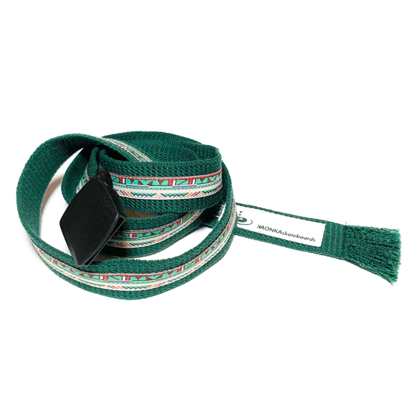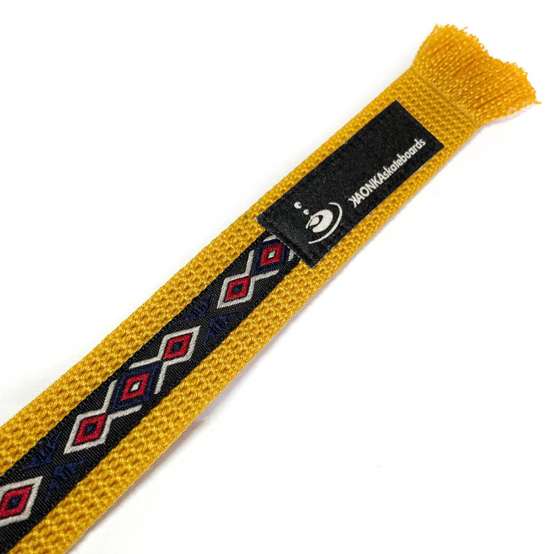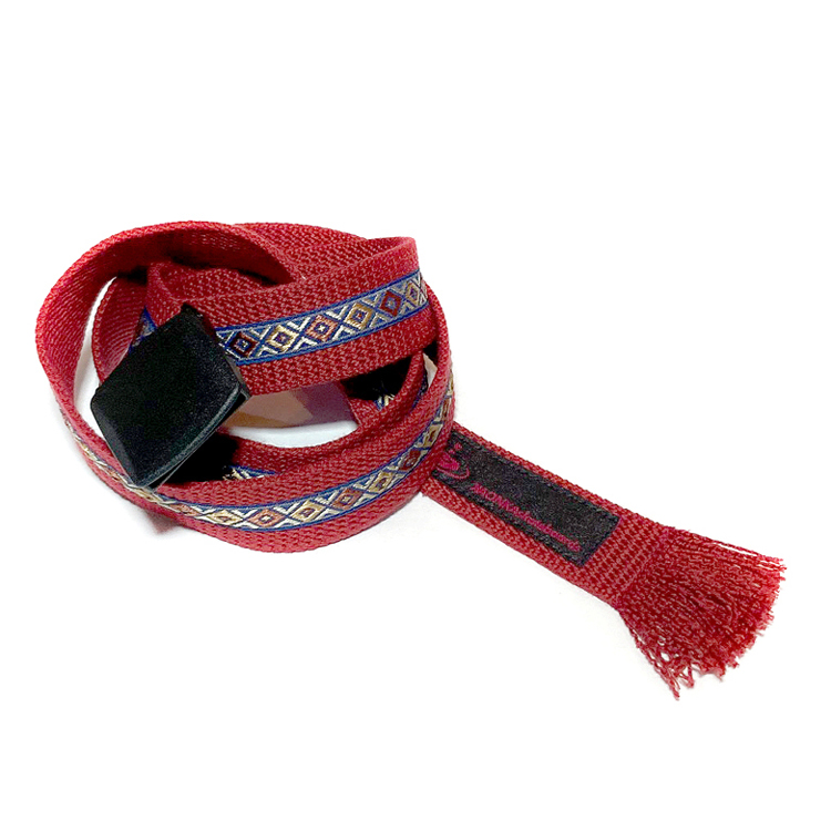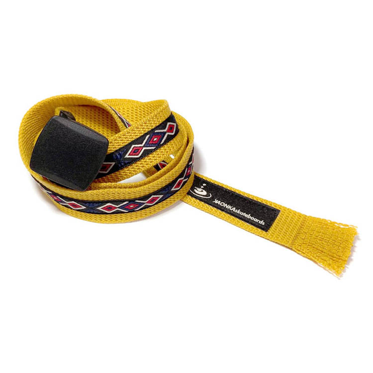 幾何学模様のテープを用いたベルト。長めのシルエットとほつれた先端がアクセント。Ortega Tape Outdoor Belt すべて¥4,180