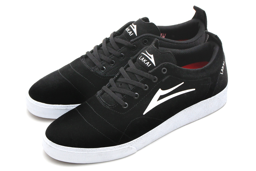 オールブラックのアッパーにLakaiのフレアロゴが映える。Bristol Black/White Suede ¥10,584