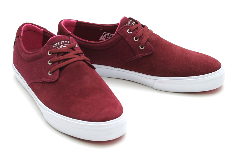 MJモデルにスエード×キャンバスのアッパーを採用。バーガンディとピンクの色の組み合わせはさすがの一言。¥10,580