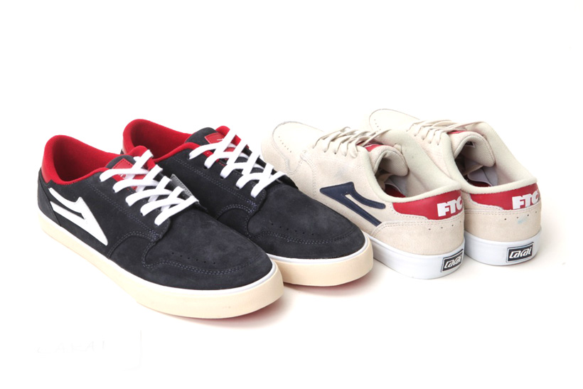 ヒール部分に配置されたFTCとLakaiのロゴが主張する1足。写真左から、ネイビー、クリームカラー。各色ともに¥11,550