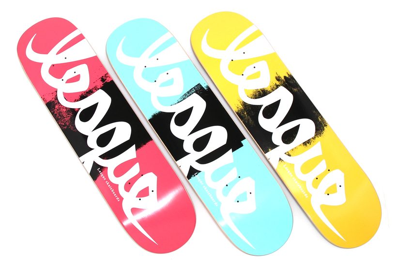 写真左から、Team Logo Pink、Team Logo Blue、Team Logo Orange(7.75 / 8 / 8.28インチ)。すべて¥10,800