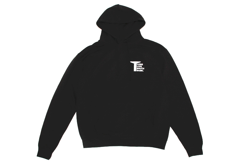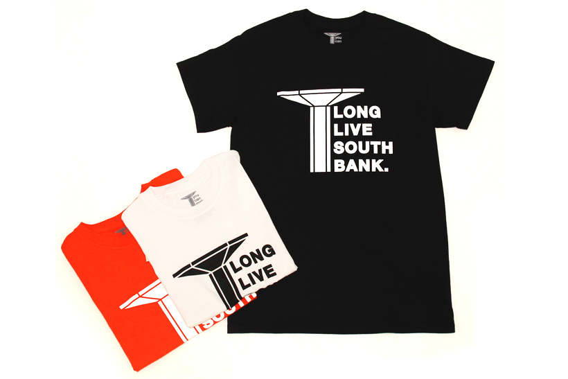 サウスバンクの特徴的な柱の横にLONG LIVE SOUTHBANK.の文字。大きなプリントがフロントで主張。各色すべて¥5,400