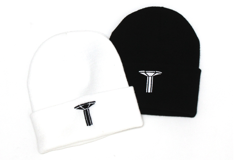 サウスバンクを象徴する柱をモチーフにしたピラーロゴを折り返し部分に刺しゅうで表現したニットキャップ。各色ともに¥3,888