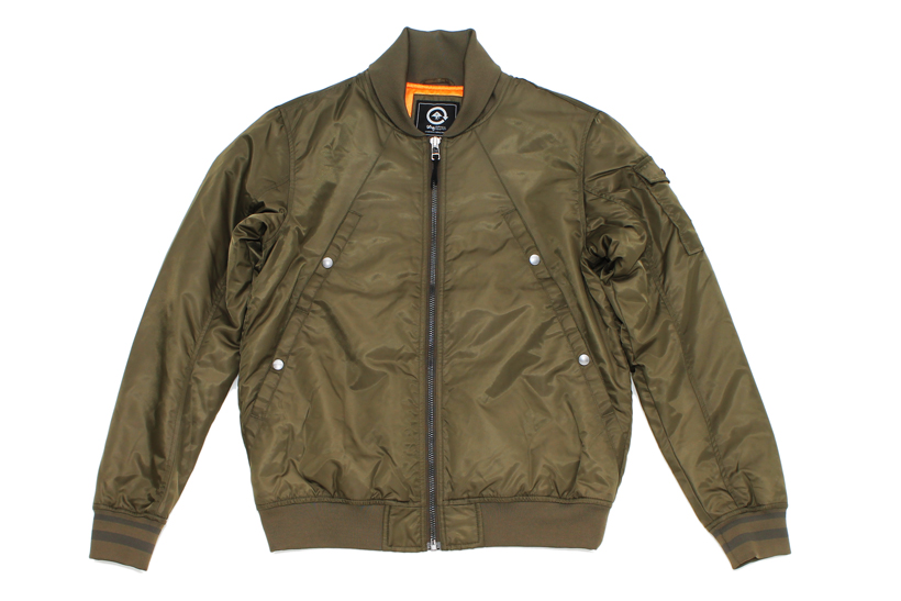 斜めにレイアウトされた左右ふたつずつのフロントポケットが特徴的なMA-1タイプのジャケット。