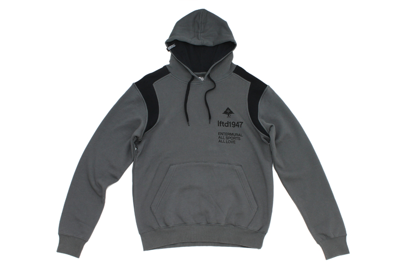 腕から方にかけて切り替えを行うことで腕周りの機能性とデザインにアクセントをつけたフーディ。