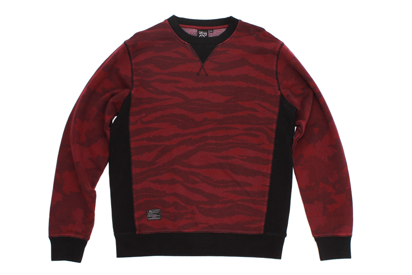 ボディ部分にはタイガーカモ、両腕にはリーフカモをモチーフにした柄を採用したスウェット。リバースウィーブ仕様も◎。