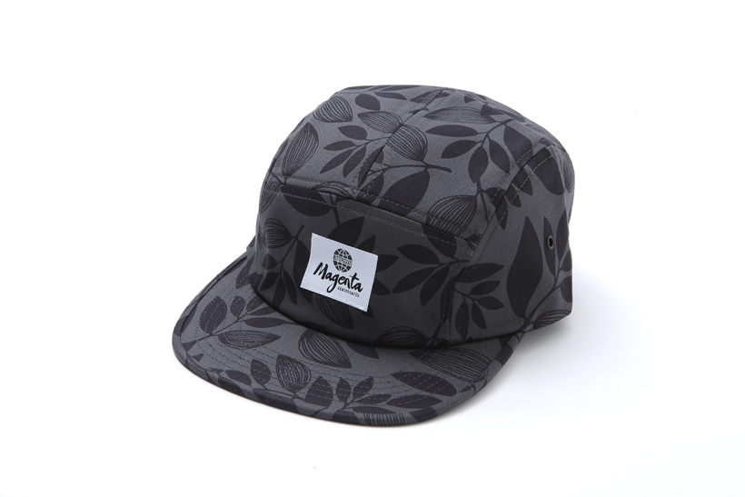 マゼンタのロゴマークであるリーフの総柄生地を使用した5パネルキャップはButter Goodsとのコラボアイテム。落ち着いた色調が大人にもバッチリ。Magenta Butter 5-Panels ¥5,184