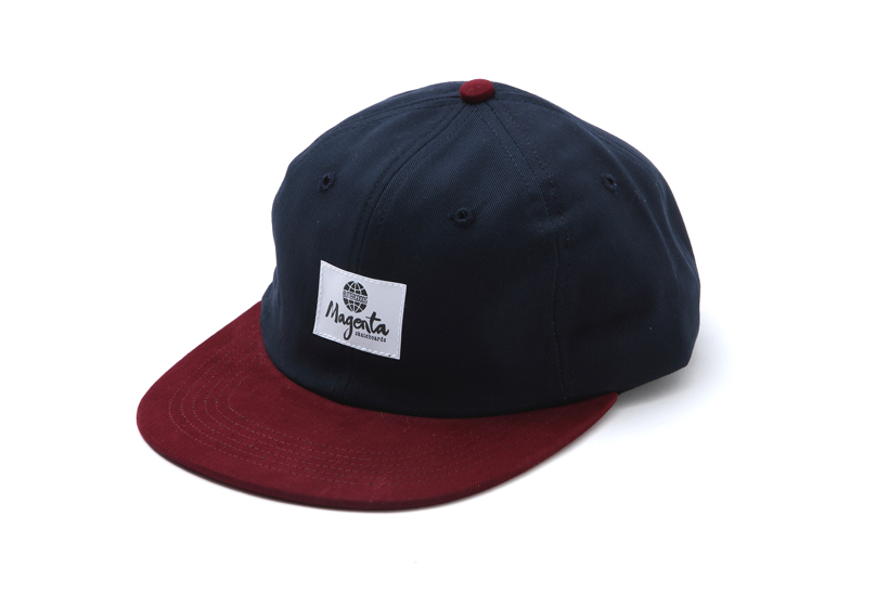 ネイビーとバーガンディの色の組み合わせがグッドなButter Goodsとのコラボレーション6パネルキャップ。タグのみのシンプルなデザインもポイント。Magenta Butter Snapback ¥5,184