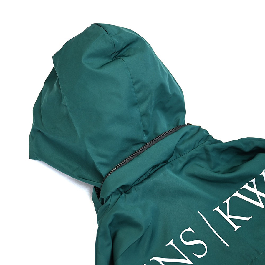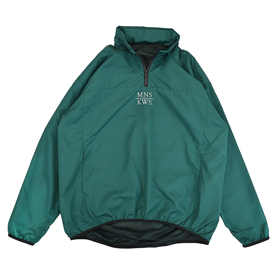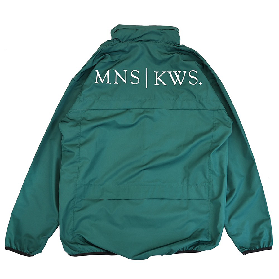 フロントとバックにリフレクタープリントを施したナイロンジャケット。襟に収納可能なフードを採用。裏地にメッシュを貼ることで着心地も◎。¥22,000
