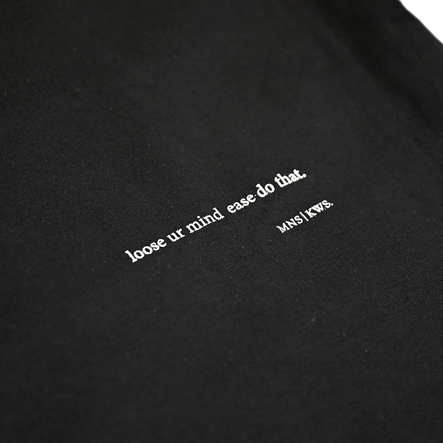 フロントにメッセージ、バックにグラフィックをプリントしたヘビーオンスTee。White、Blackの2色展開。ともに¥9,350