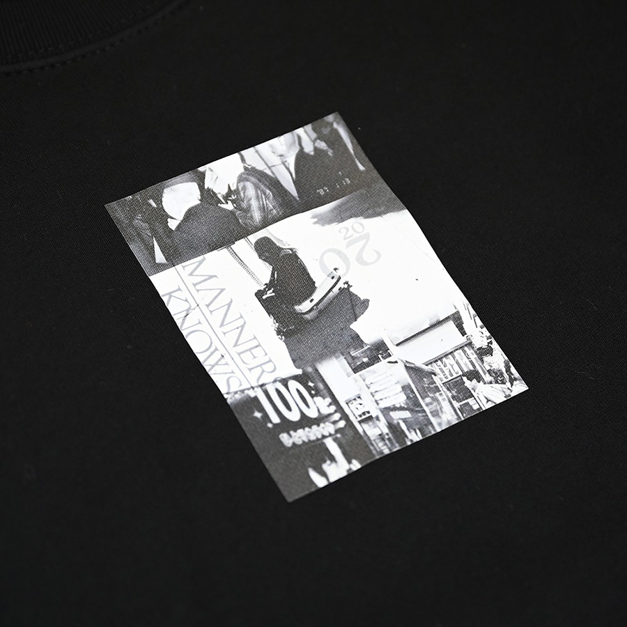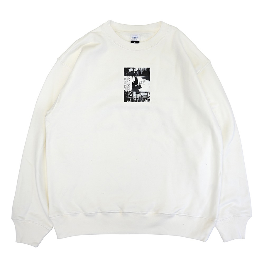 フロントにフォトプリント、バックに大きくロゴを配した肉厚ボディのクルースウェット。White、Blackの2色展開。ともに¥9,350