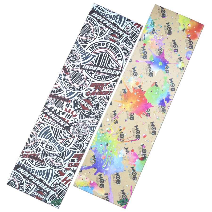 写真左から、Indy Sticker Mashup、Spirals And Splatters Clear。ともに¥2,530