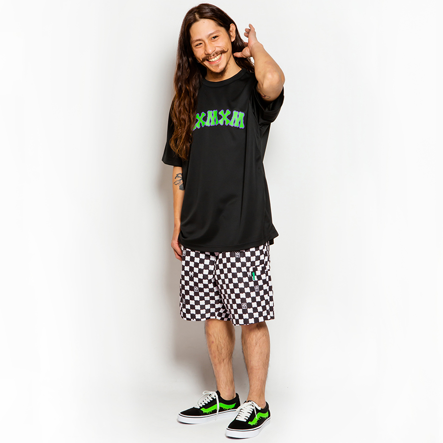 要所要所にロゴを忍ばせたオリジナルチェッカー柄ショーツ。こちらも速乾性生地を採用。MxMxM Checker Shorts ¥13,750